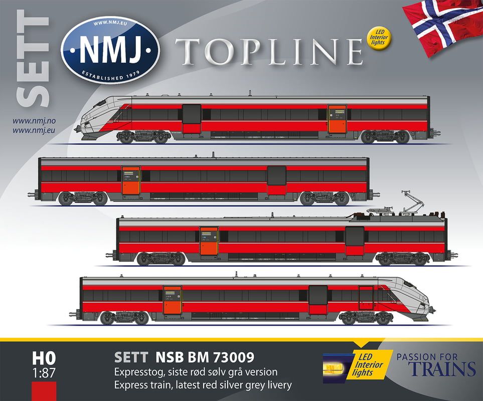 NMJ Topline modell av NSB BM73 009 i den siste røde,sølv og grå versjonen etter "midlife update" med forenkling av "tomatsuppe designen". DCC digital med lyd og interiørlys.
